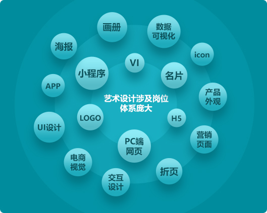 藝術(shù)設(shè)計(jì)與制作的就業(yè)領(lǐng)域十分寬廣,不管是房地產(chǎn)、醫(yī)療、制造業(yè)等傳統(tǒng)領(lǐng)域,還是電商、金融、社交、新媒體營(yíng)銷等各大互聯(lián)網(wǎng)新興領(lǐng)域,都需要專業(yè)設(shè)計(jì)人才把控審美。