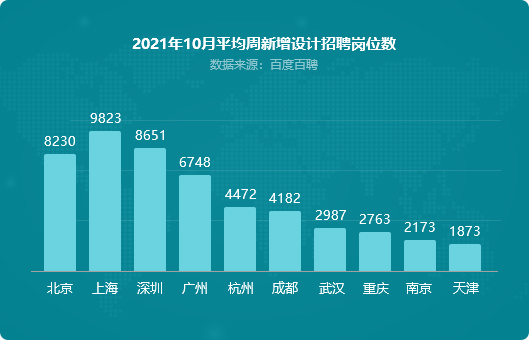 互聯(lián)網(wǎng)技術(shù)領(lǐng)域,設(shè)計(jì)師的缺口一直龐大,除一線城市外,二三線城市也有很多用人需求,是企業(yè)發(fā)展必備的剛需職位。根據(jù)第三方數(shù)據(jù)統(tǒng)計(jì),每周新增設(shè)計(jì)崗位9000+。