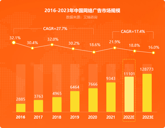就目前的發(fā)展而言,網(wǎng)絡(luò)營銷的形式已經(jīng)從單一的營銷模式發(fā)展到各種營銷模式。我國互聯(lián)網(wǎng)廣告市場總規(guī)模已達9343億元,隨著未來廣告主對網(wǎng)絡(luò)營銷的投放需求逐漸加強,未來中國互聯(lián)網(wǎng)營銷市場仍然增長可期。